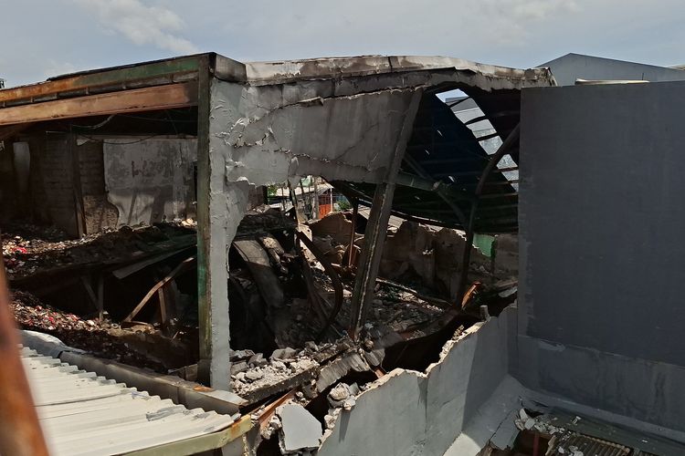 Sebelumnya, saat kebakaran melahap bengkel tersebut, area lantai dua dan tiga bangunan memang ambruk ke bawah.